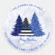 Ajoutez la touche finale à vos salutations de vacances à vos amis et votre famille avec cette étiquette de retour de Noël de police - Ligne Bleue mince, plaid noir et bleu et parties scintillant bleues sur un motif arrière - plan de parties scintillant de neige argentée. Personnalisez avec le nom de famille et l'adresse. Ce étiquette de adresse de Noël de la police est parfait pour les familles de policiers ou les cartes de Noël du service de police. DROIT D'AUTEUR © 2020 Judy Burrows, Black Dog Art - Tous droits réservés. Police Christmas Blue Holiday Tree Retourner l'adresse Classic Round Sticker