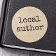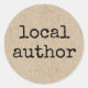 Stickers avec le texte "auteur local" dans une police usée style machine à écrire sur une image imprimée papier Kraft look arrière - plan.