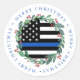 Ajoutez la touche finale à vos enveloppes, cartes de Noël et stationnaire avec cette unique police mince ligne bleue Joyeux autocollant de Noël - Couronne de Noël dans un drapeau de police design moderne noir bleu avec sainte et baies. Cet autocollant de Noël de la police est parfait pour les policiers, les forces de l'ordre et la famille de la police. DROIT D'AUTEUR © 2020 Judy Burrows, Black Dog Art - Tous droits réservés. Sticker rond classique de Noël Joyeux de la police mince ligne bleue