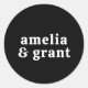 Autocollants de mariage de style moderne avec une disposition simple et minimale avec vos noms dans une police rétro super. Le jeu de couleurs est noir avec des lettres blanches. Les polices / couleurs peuvent être modifiées dans l'outil d'édition de conception. Ces autocollants de mariage sont excellents comme enveloppes scellées ou pour customiser vos faveurs de mariage.