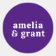 Autocollants de mariage de style moderne avec une disposition simple et minimale avec vos noms dans une police rétro super. Les couleurs vives sont un violet royal vif. Les polices / couleurs peuvent être modifiées dans l'outil d'édition de conception. Ces autocollants de mariage sont excellents comme enveloppes scellées ou pour customiser vos faveurs de mariage.