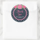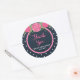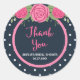 Sticker Rond Polka bleu blanc point et roses rose Merci
