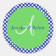 Sticker Rond Polka bleu vert blanc Point Monogramme A Enveloppe