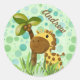 L'adorable thème de la jungle présente des arrière - plans pois et vert pastel et bleu avec douceur girafe bébé et Palme de coco pour un style mignon et contemporain avec texte personnalisable.