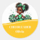 Cet autocollant rond classique est montré avec une impression de pom-pom girl mignonne avec un nom d'échantillon, customiser avec ce modèle montré et changer le nom à la vôtre. Customisez cet élément avec ce modèle. Image sous licence