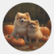 Sticker Rond Poméranien Chiot Automne Citrouille délice