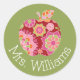 Sticker Rond Pomme d'enseignant personnalisée avec modèle flora