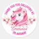 Sticker Rond Pony anniversaire fête rose cheval merci