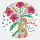 Sticker Rond Poppy Girl Ukrainian Folk Art