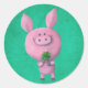 Sticker Rond Porc chanceux avec quatre feuilles de trèfle chanc