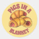 Sticker Rond Porcs dans une couverture Croissant Rouleau Hot Ch