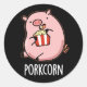 Sticker Rond Porkcorn Funny Popcorn Pun Dark BG