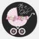 Un adorable baby shower de voiture rose c'est un autocollant de baby shower fille.