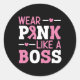 Sticker Rond Porter Rose Comme Un Boss Pink Ribbon Cancer Du Se