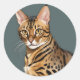 Sticker Rond Portrait dynamique de chat Bengale avec points dis