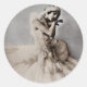 Prima ballerina avec son visage dans les mains se tient sur le bout des orteils. photo vintage modifiée artistiquement c1900.