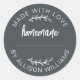 Autocollant noir délavé « Fabriqué avec amour » avec une typographie blanche propre et un design de lettrage manuscrit. Parfait pour sceller les produits de boulangerie, les pots de confiture, les biscuits, le pain, les boîtes à tarte, l'emballage des petites entreprises, les faveurs de fête et les cadeaux faits à la main.