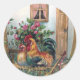 Sticker Rond Poulets à la traîne et maison d'oeufs