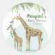 Giraffe Safari avec Sticker Rond Feuille Vert au Baby shower. Pour une personnalisation plus avancée de ce design, il suffit de cliquer sur le bouton "Customiser" ci-dessus !