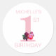 Sticker Rond Premier anniversaire rose simple avec Rose et nom