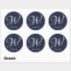 Sticker Rond Premier monogramme bleu marine personnalisé