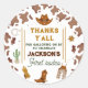 Cowboy Anniversaire 1er Rodéo Anniversaire en faveur Sticker. Ce design présente divers objets sur le thème du cowboy et certains cactus ainsi qu'un motif à l'imprimé de vache ou de vache. Tout le texte est modifiable sur ce anniversaire aux tons neutres ! Trouvez des articles correspondants entièrement personnalisables dans notre boutique.