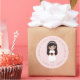Sticker Rond Première Communion Brunette Girl Robe Blanche Rose