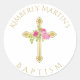 Sticker Rond Première communion Gold Cross Rose rose Monogramme