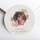 Sticker Rond Première Communion Photo Or rose Orchidées Marbre