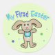 Le premier design de Pâques de ce mignon bébé présente un adorable bébé lapin portant un bib vert aqua et des pois colorés. Un texte amusant bleu et aqua avec une ombre verte dit "Ma première Pâques".