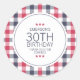 Sticker Rond Preppy Rouge blanc et bleu Merci plaid Anniversair