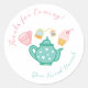 Ces petits autocollants doux sont parfaits pour les faveurs de fête pour votre fête de thé. Doté d'une théière illustrée, d'une théière, d'un sachet de thé et d'un cupcake. Le dos de l'étiquette-cadeau est muni d'un motif de chèque rose pâle coordonné.