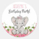 Sticker Rond Princesse Tiara Elephant Fleurs roses Anniversaire