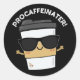 Sticker Rond Procaffeinator Funny Caféine Coffee Pun Dark BG