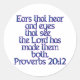 Oreilles qui entendent et yeux qui voient, le Seigneur les a faites toutes les deux. Proverbes 20:12