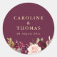 Sticker Rond prune violette & pêche mariage floral classique ro