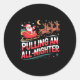 Sticker Rond Pulling An All-nighter Funny Christmas Santa Sleig