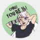Sticker Rond Punk Teen Girl Green Cartoon 16th Birthday
