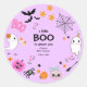 Purple A Little Boo est presque dû mignon Ghost Girl Halloween Baby shower Classic Round Sticker.