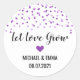 Laisser l'amour grandir marque de faveur de mariage autocollant avec confetti violet et coeur avec texte noir. Parfait pour mariage ou nuptiale pomme de douche ou de paquets de semences faveurs.