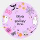 Sticker rond Éffrayant violet Un mignon Fantôme Halloween Fille 1er Anniversaire Classic.