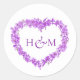 Heart forget me not purple floral monogram wedding stickers. Beautiful wedding stickers ideal to embellish your wedding favors, gifts and more. Other matching items and color options are also available. © Original hand ink and watercolor painting and design by Sarah Trett exclusively for www.mylittleedenweddings.com on Zazzle.