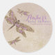 Sticker Rond Purple & Gold Dragonflies Fête de libellules Favor