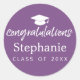 Sticker Rond Purple Graduation Cap félicitations script moderne