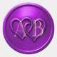 Sticker Rond Purple Two Hearts Intertwined Monogram Wedding