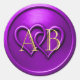 Sticker Rond Purple Two Hearts Intertwined Monogram Wedding