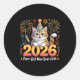 Sticker Rond Purrfect New Year 2026 Cute Cat Fireworks Celebrat