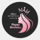 Sticker Rond Queen Crown Parties scintillant rose Noir Joyeux a