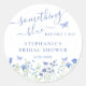Ce sticker quelque chose de bleu avant mon mariage est décoré avec des fleurs sauvages bleues peintes à l'aquarelle et une typographie élégante. Facile à personnaliser. Aquarelle originale © Michele Davies.
