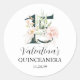 15 est écrit en script gras et décoré de fleurs aquarelles roses. Trois lignes de texte suivent pour vous permettre de le personnaliser. Cet article fait partie de la collection florale rose élégante Quinceanera.